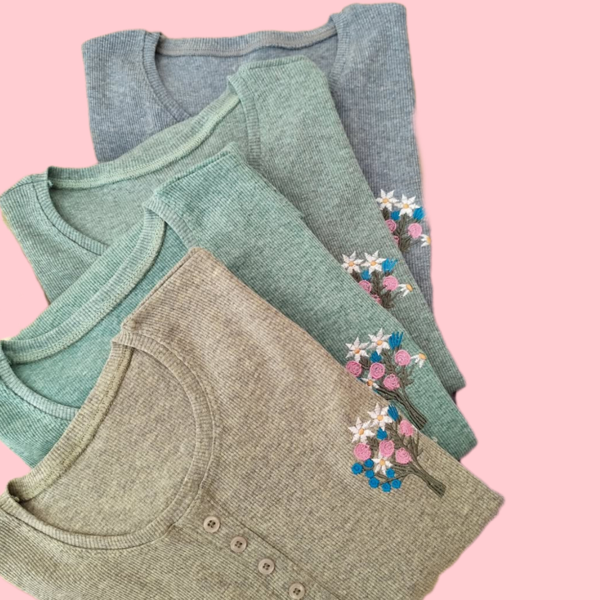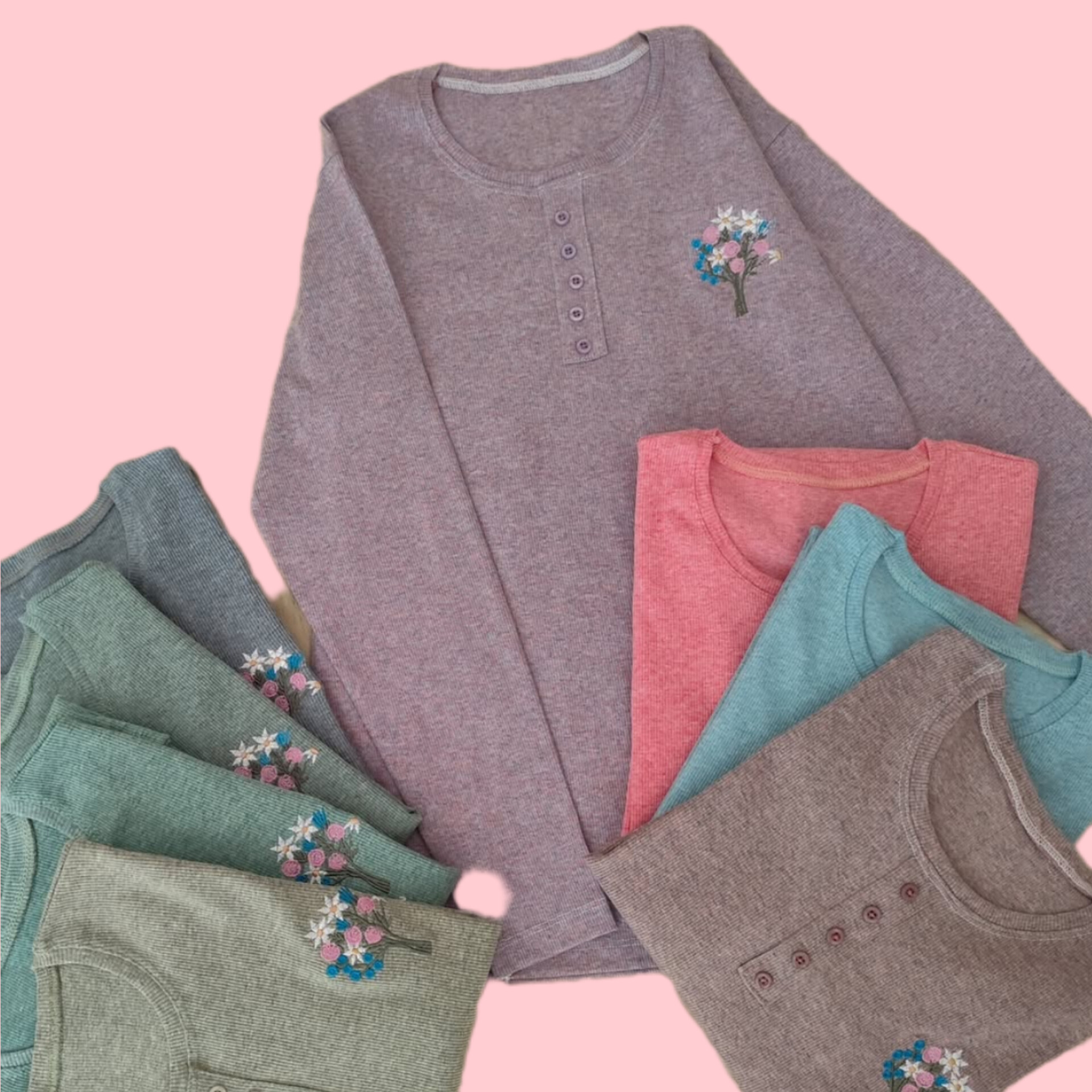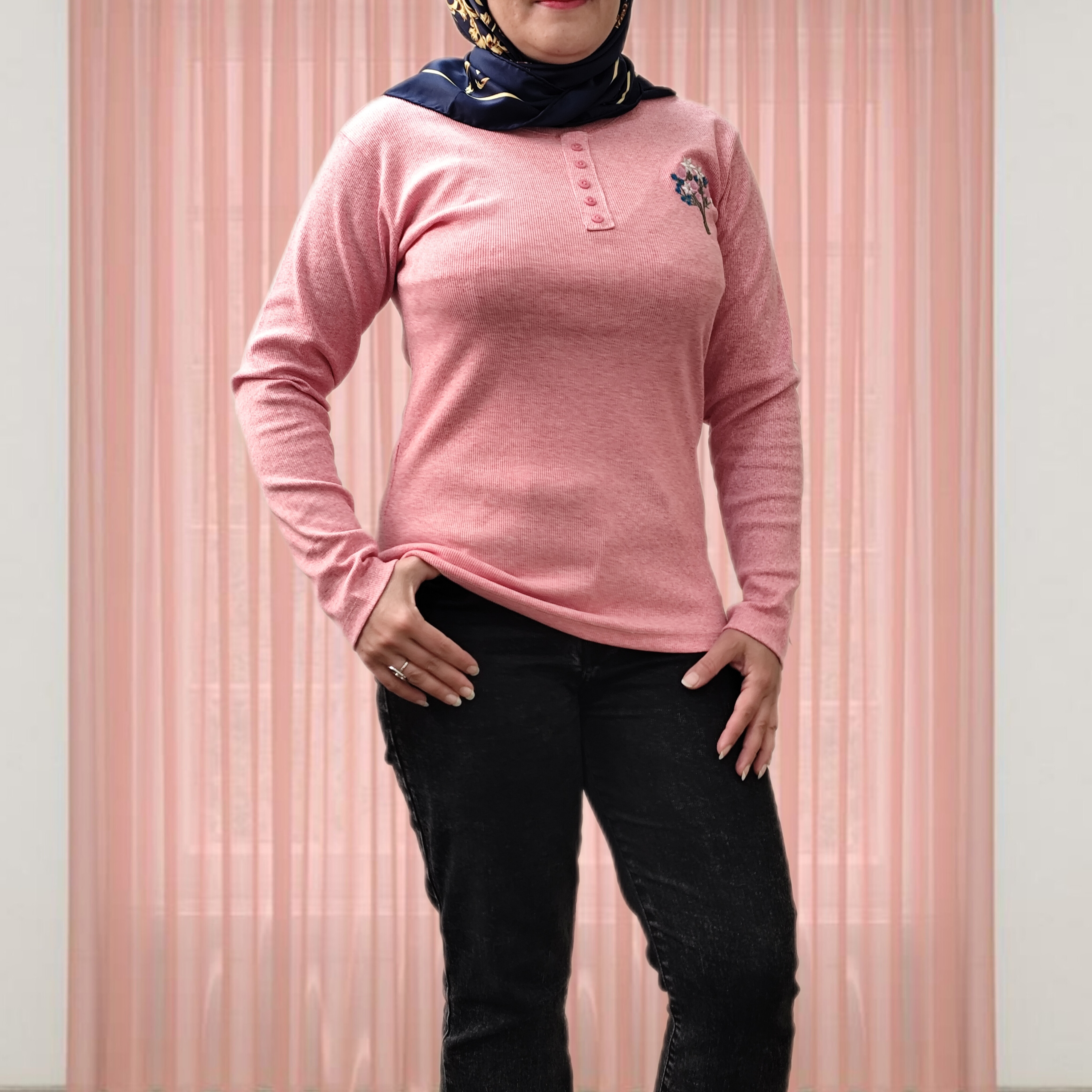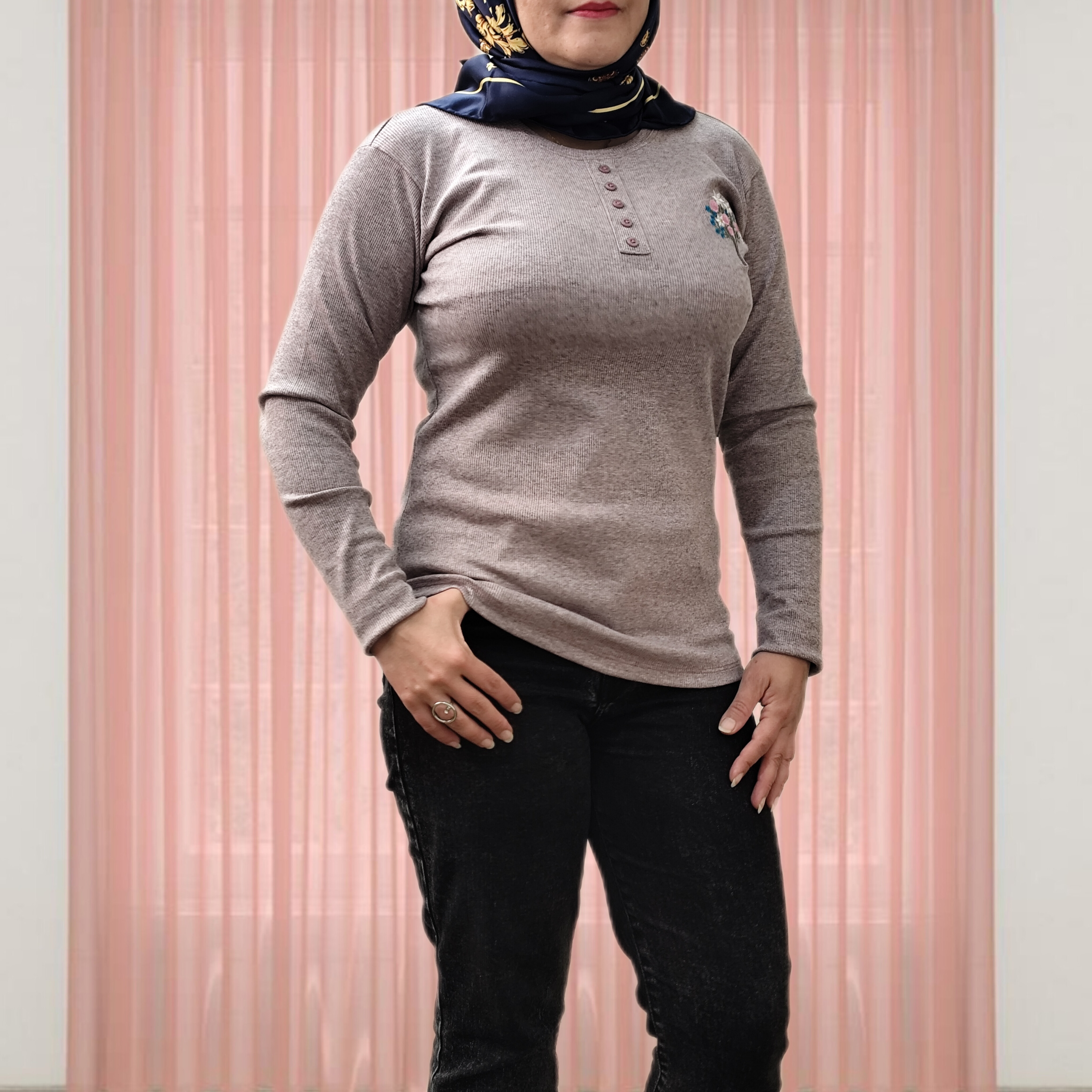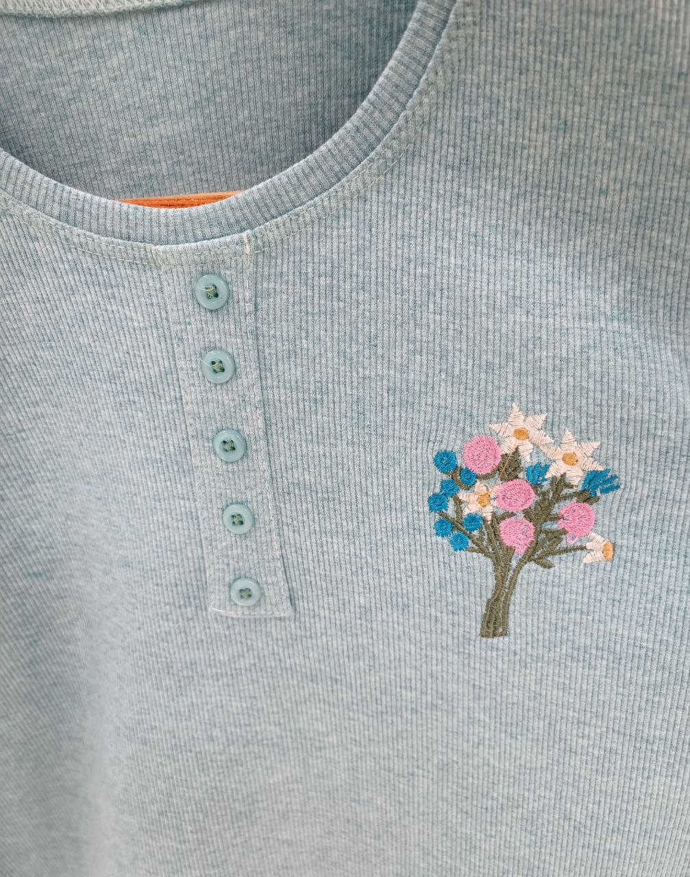 بلوز آستین بلند زنانه جنس نخ پنبه کبریتی یقه گرد دکمه تزیینی نرم و لطیف یه دسته گل گلدوزی شده جذاب یه بلوز کاربردی واسه روزهایی که نه خیلی سرد نه خیلی گرم ،مناسب زیر مانتو یا پالتو خیلی ها گرمایی هستند دوست دارن یه لباس نه صخیم نه نازک زیر مانتو بپوشن من این کار توصیه میکنم